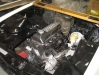 Den letzten Monat habe ich damit verbracht, Motor und Getriebe zu zerlegen, säubern, einige Teile strahlen und alles zu lackieren. Anschliessend alles wieder mit neuen Dichtungen, Wasserpumpe usw. zusammengebaut. Ein neuer Kupplungssatz in 8.5" musste auch sein. Gestern wars dann soweit, Motor und Getriebe sind endlich wieder im Auto drin.